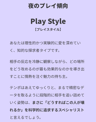 ナイトタイプ診断 2026/04/26 01:18:18 女の子とお店をフォローします いいね! …ほぼ当たってました(笑)ナイトタイプ診断やったら結果教えてね💗 女の子とお店をフォローします いいね! この日記をXに投稿する